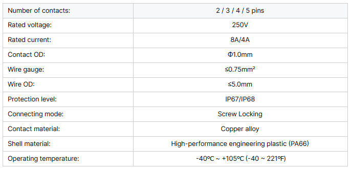 Rugged Construction: The connector housing, made from engineering-grade PBT or metal, provides excellent mechanical strength, chemical resistance, and protection against impact and crushing.