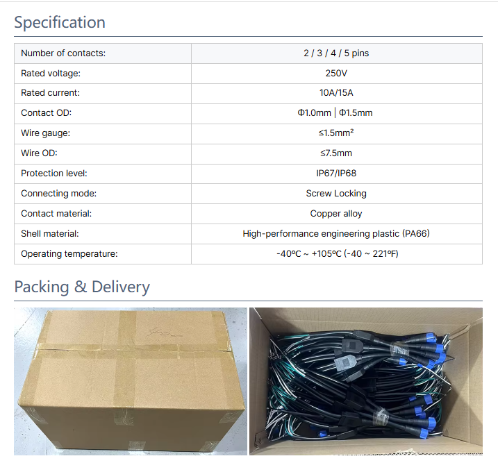 Industrial LED Lighting Systems: Providing reliable, waterproof power connections for high-bay lights, outdoor area lighting, and machine vision lighting.