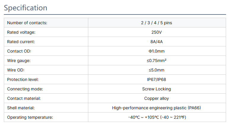 The M8 Connector is a compact, circular Threaded Connector renowned for its reliability in sensor and actuator networks, factory automation, and harsh environment applications. Available in 3-pin and 4-pin configurations in both male and female versions, this connector features a secure screw-locking mechanism and an IP67 or higher rating, making it dust-tight and capable of withstanding temporary immersion in water. It is the go-to choice for connecting devices in control cabinets, motor systems, and outdoor equipment.