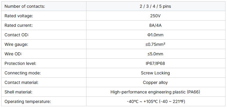 Rugged Construction: The connector body is typically constructed from high-grade engineering plastics or metal, offering excellent resistance to impact, corrosion, and UV radiation.