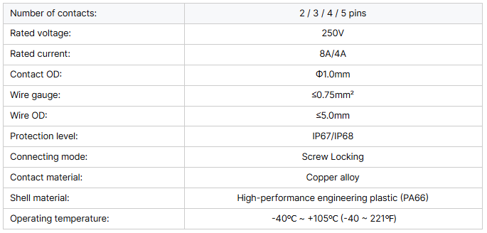 5-Pin Configuration: Offers multiple independent circuits in a single, compact connector, suitable for devices requiring combined power, signal, and data transmission.